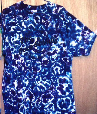 Soak and wring out fabric. Pinch sections of fabric while poking in the center of the pinch and rubberband. Making lots of small pinches (mine resulted in a wad that looked like lots of popcorn) will make lots of small blotches. The second blotch pattern was done by having a pinched section within a pinched section.